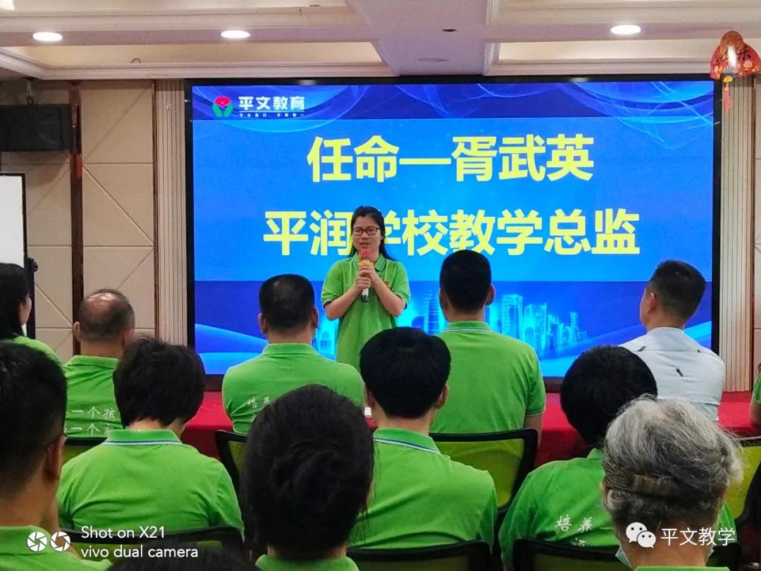 才华横溢教学严谨的胥武英老师备受学生喜爱,经常得到家长好评,是教师们的好榜样!她说她愿意走出既定的舒适圈,突破自己,接受来自公司的任命--平润培训学校教学总监,跟所有老师们一起保证教学辅导的质量。